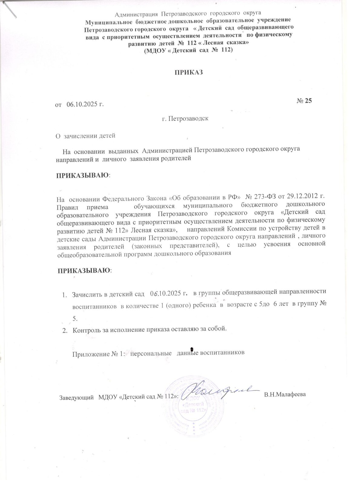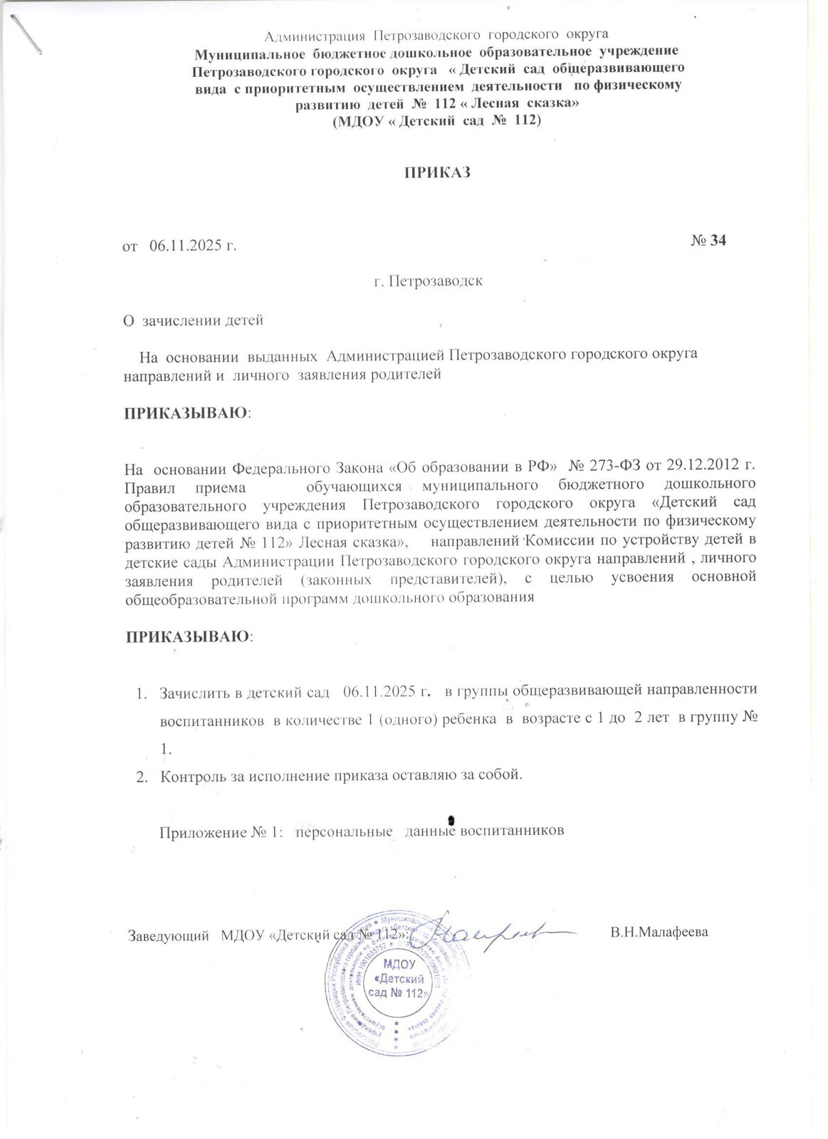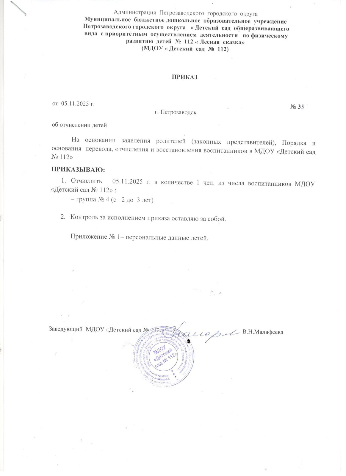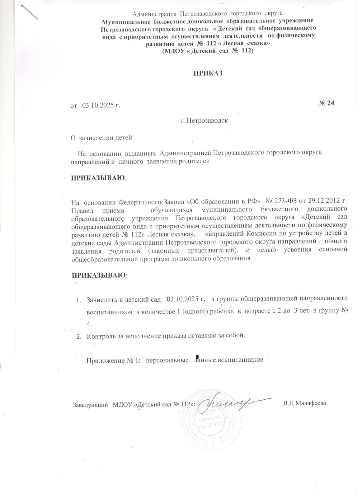 Приказы на зачисление, отчисление и переводе воспитанников в 2024- 2025 году, 2025-2026 году