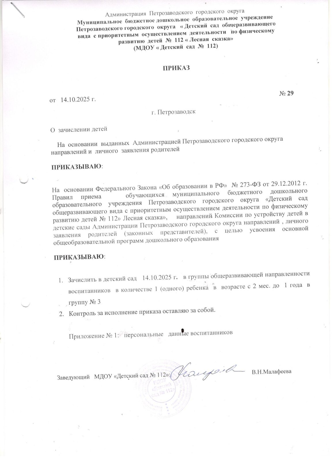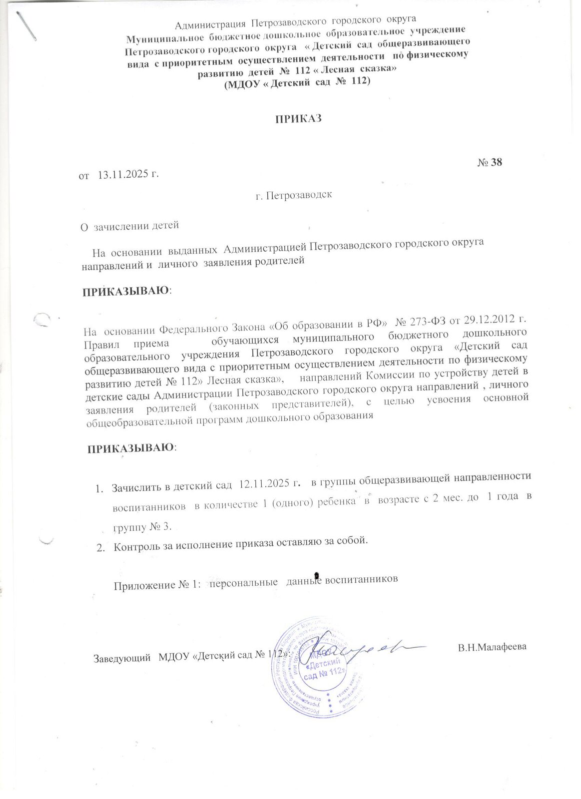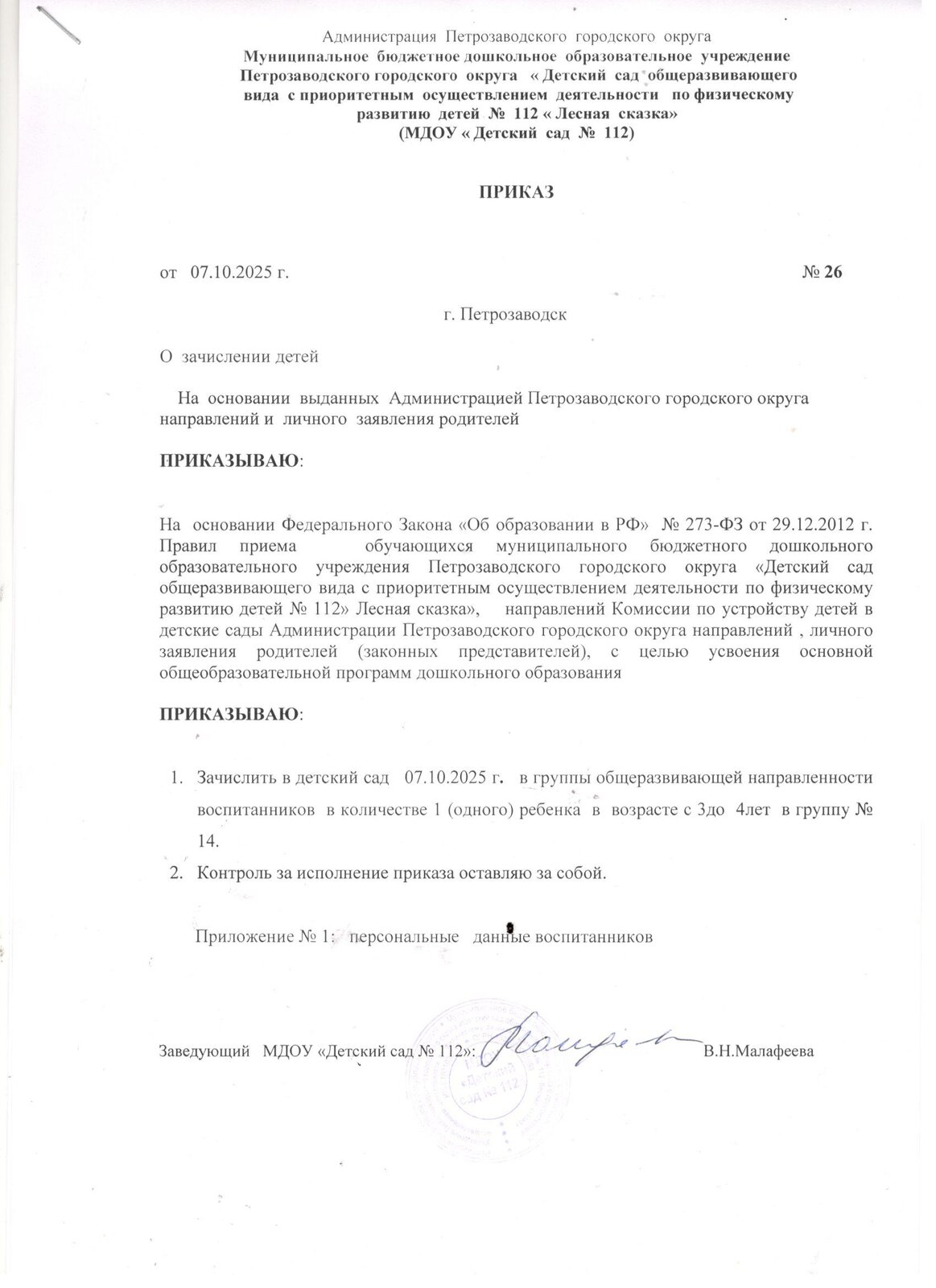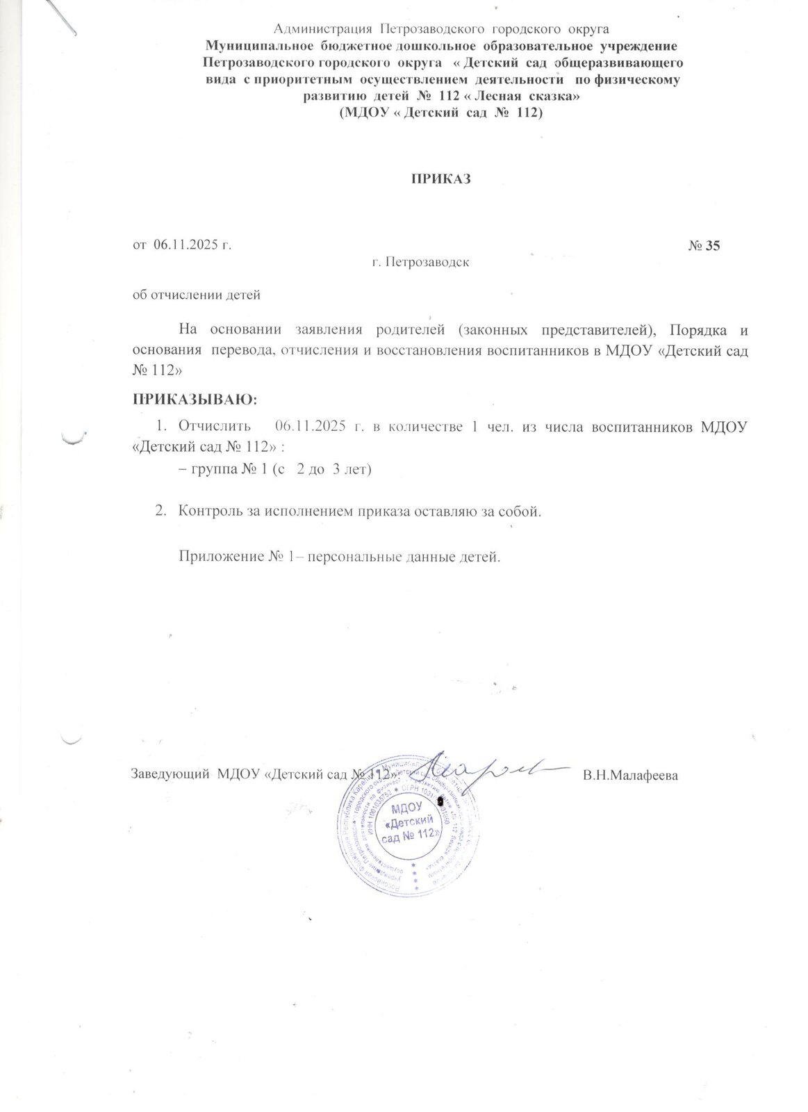 Приказы на зачисление, отчисление и переводе воспитанников в 2024- 2025 году, 2025-2026 году