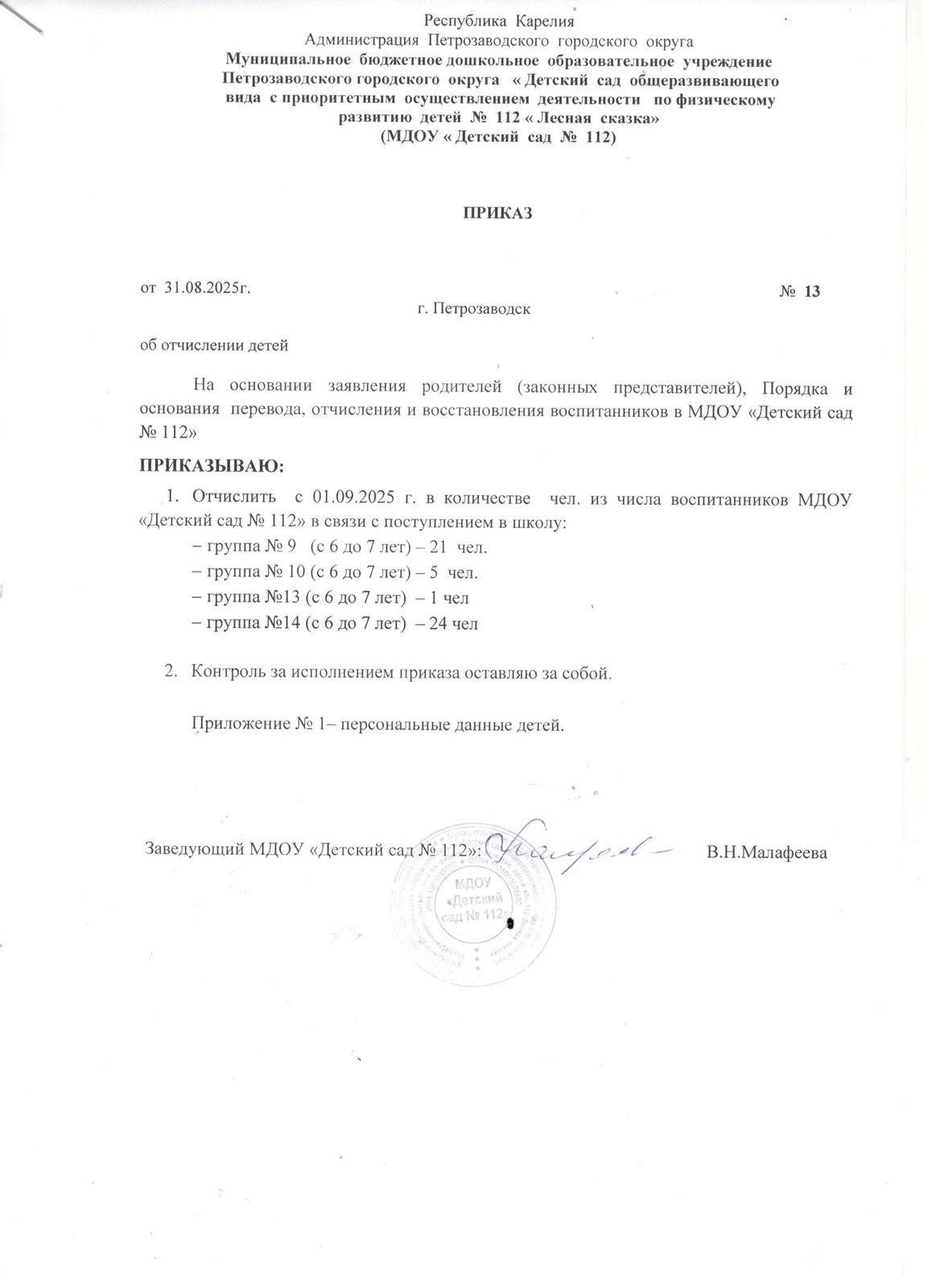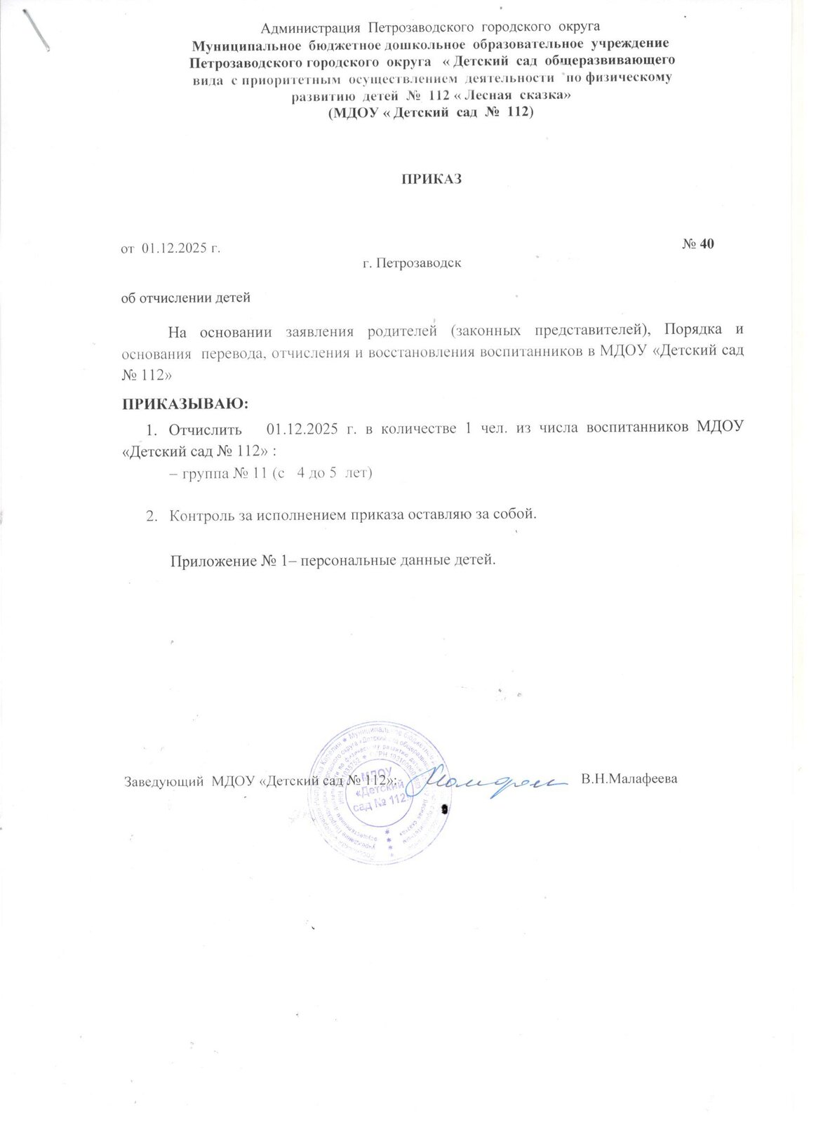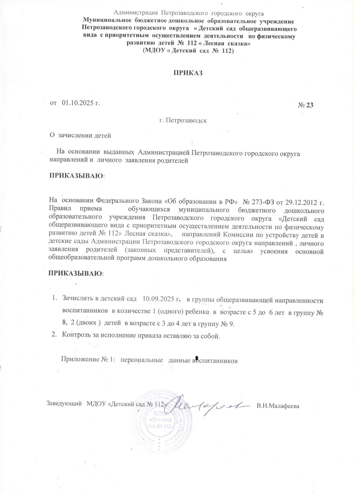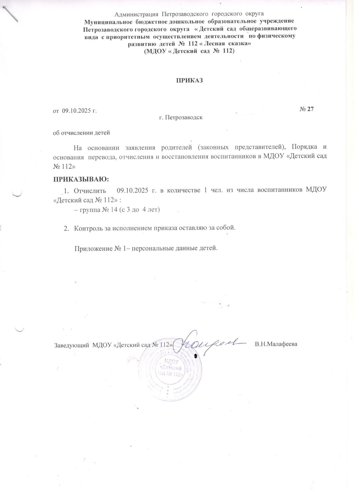 Приказы на зачисление, отчисление и переводе воспитанников в 2024- 2025 году, 2025-2026 году