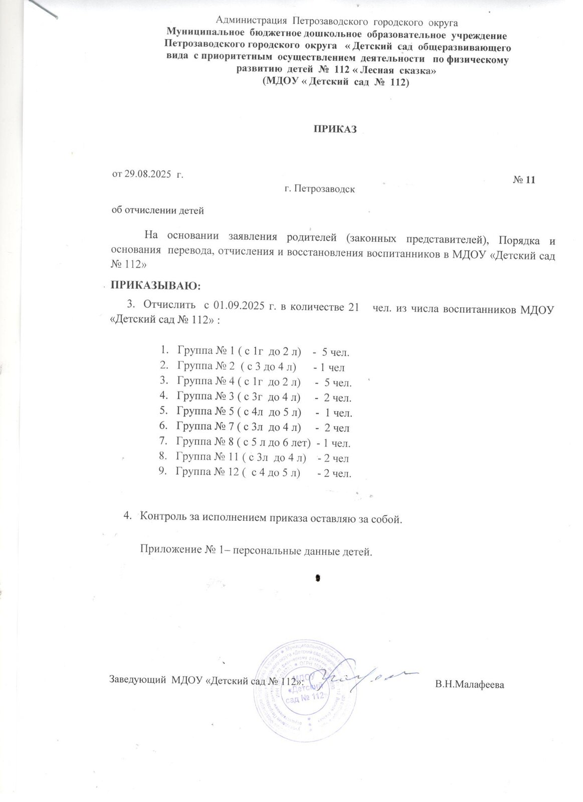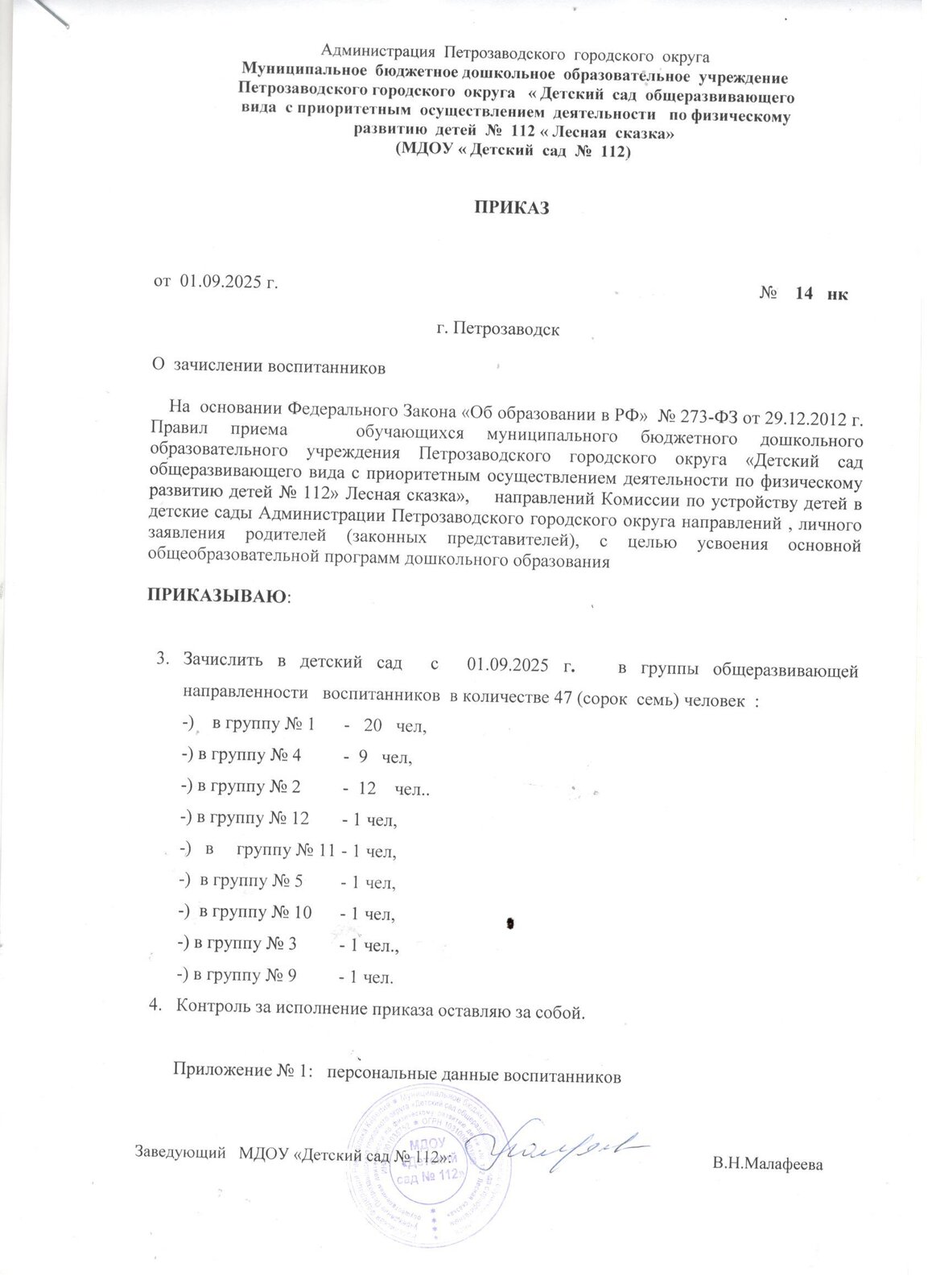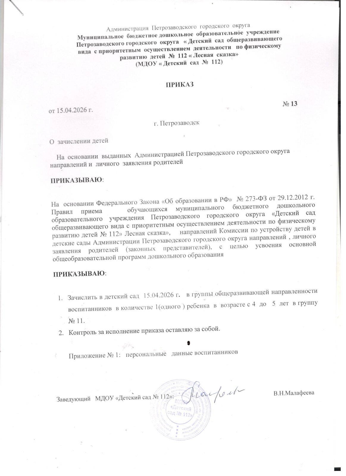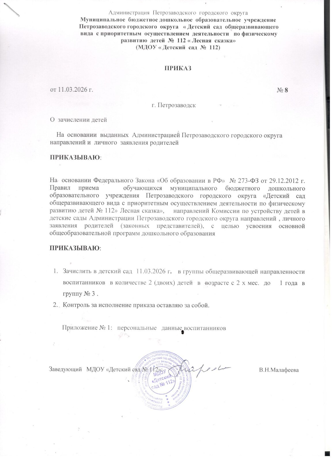 Приказы на зачисление, отчисление и переводе воспитанников в 2024- 2025 году, 2025-2026 году